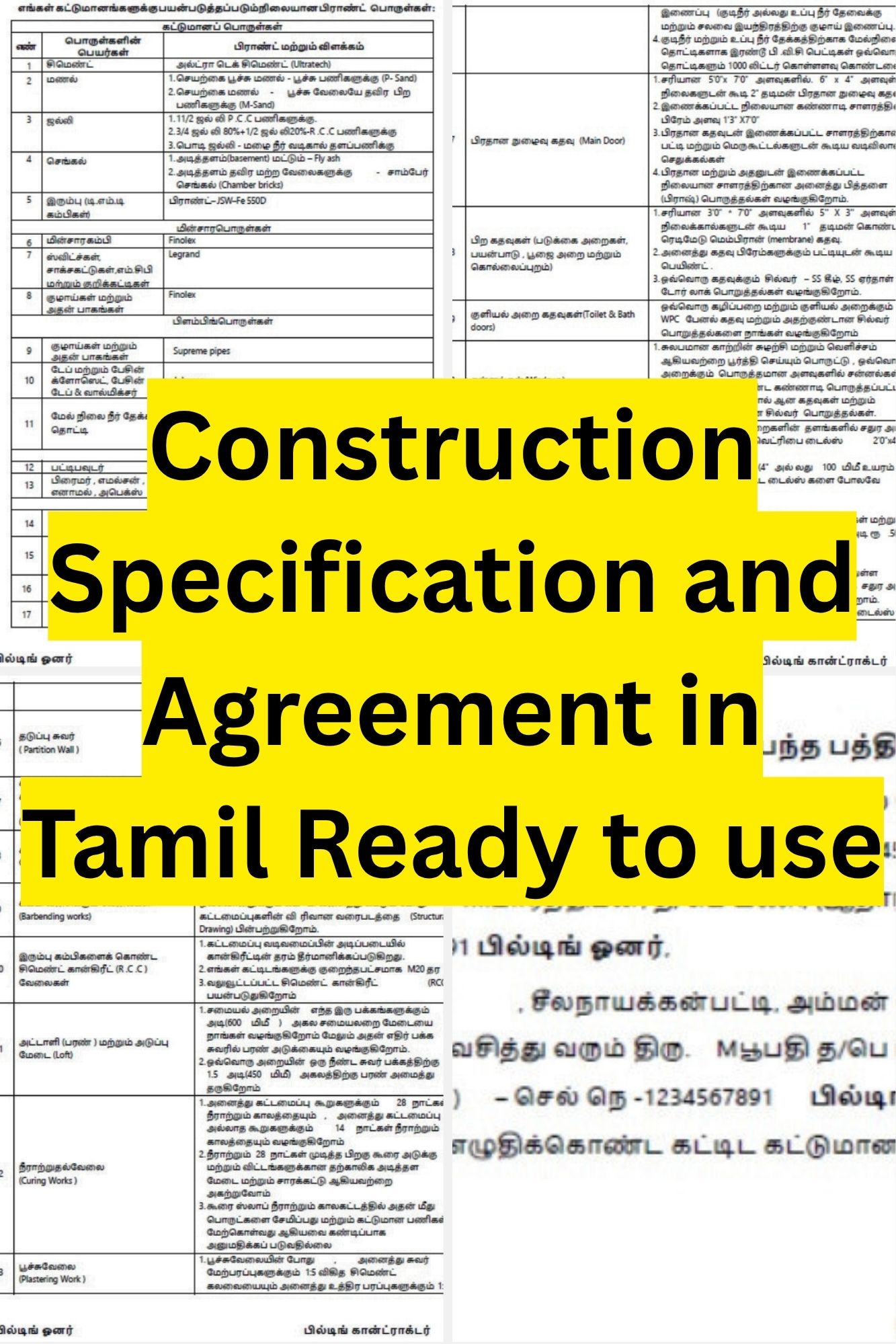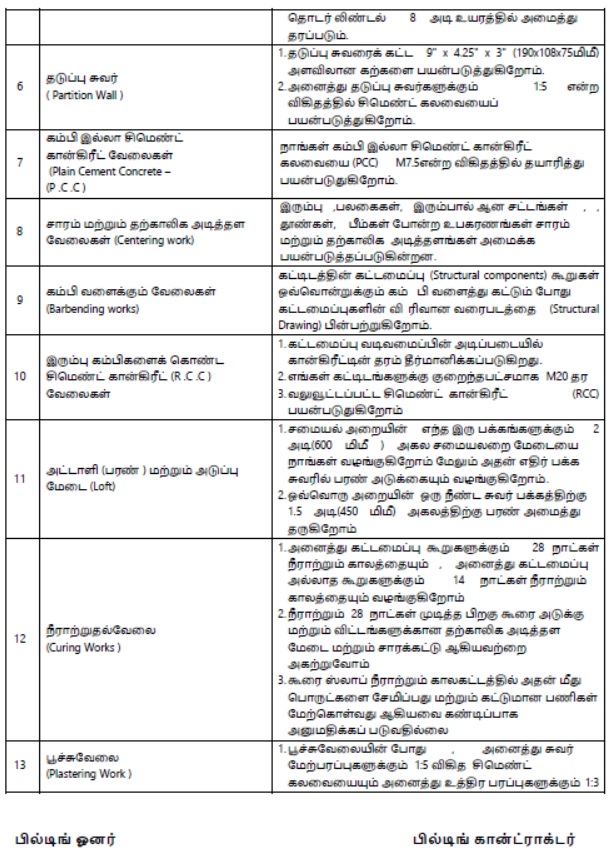 Building Contract specification / agreement template in Tamil- (Ready to use)