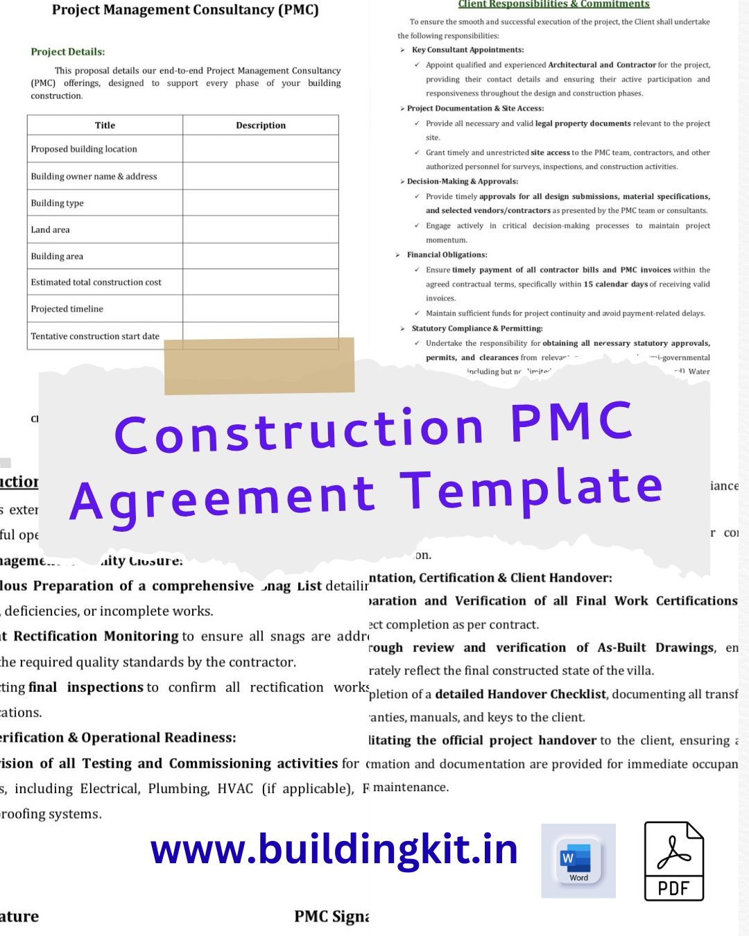 PMC – Project Management Consultancy for building constrution Agreement Template – English (Ready to Use)