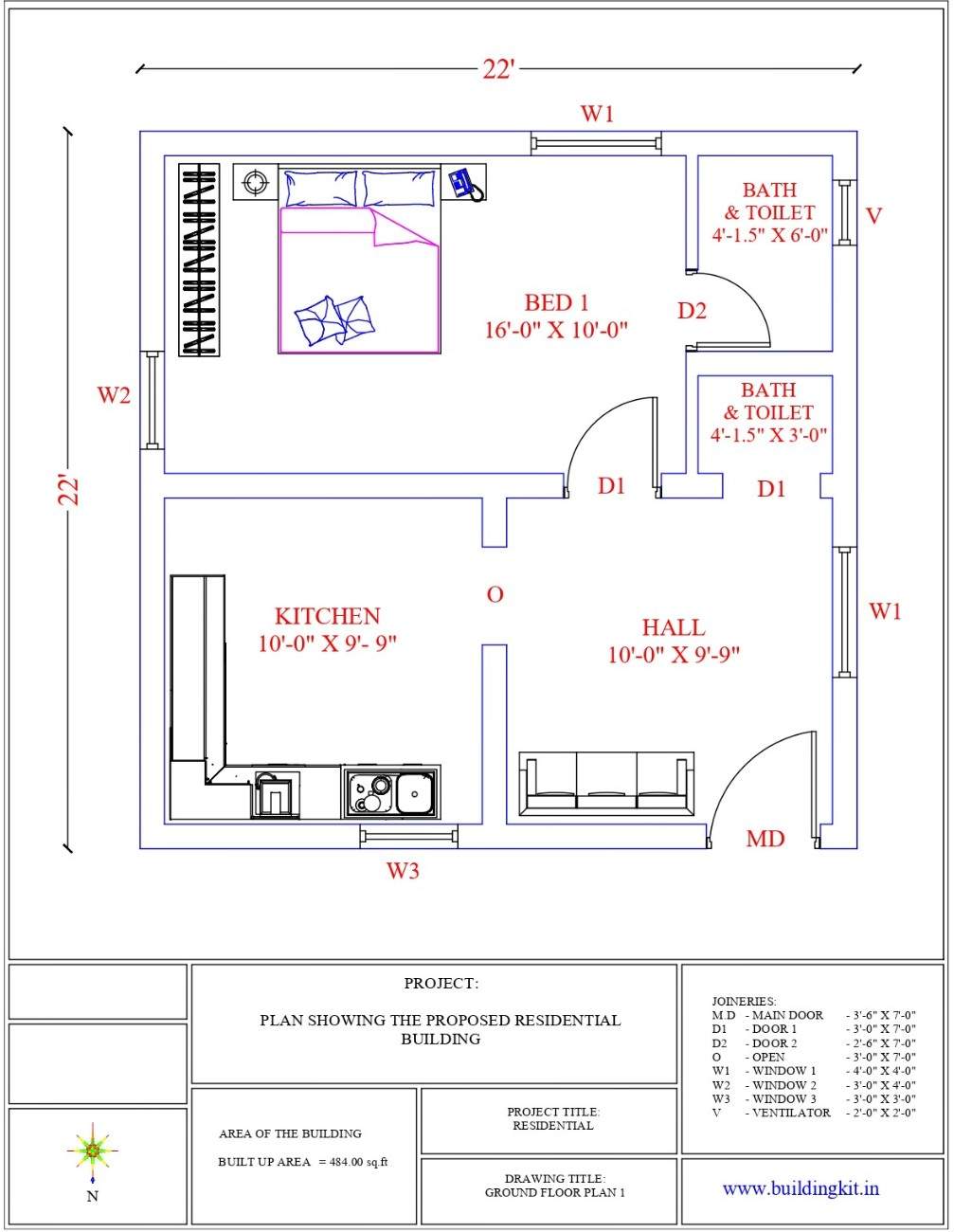 | Plot Size: | 22’0″x22’0″ | Plot Area: | 484 sqft |
