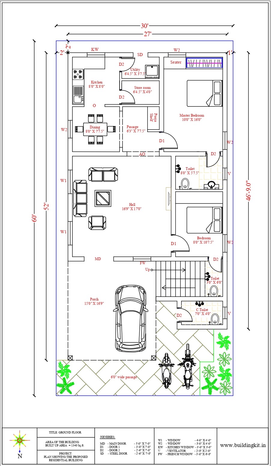 | Plot Size: | 27’0″x52’0″ | Plot Area: | 1340sqft |