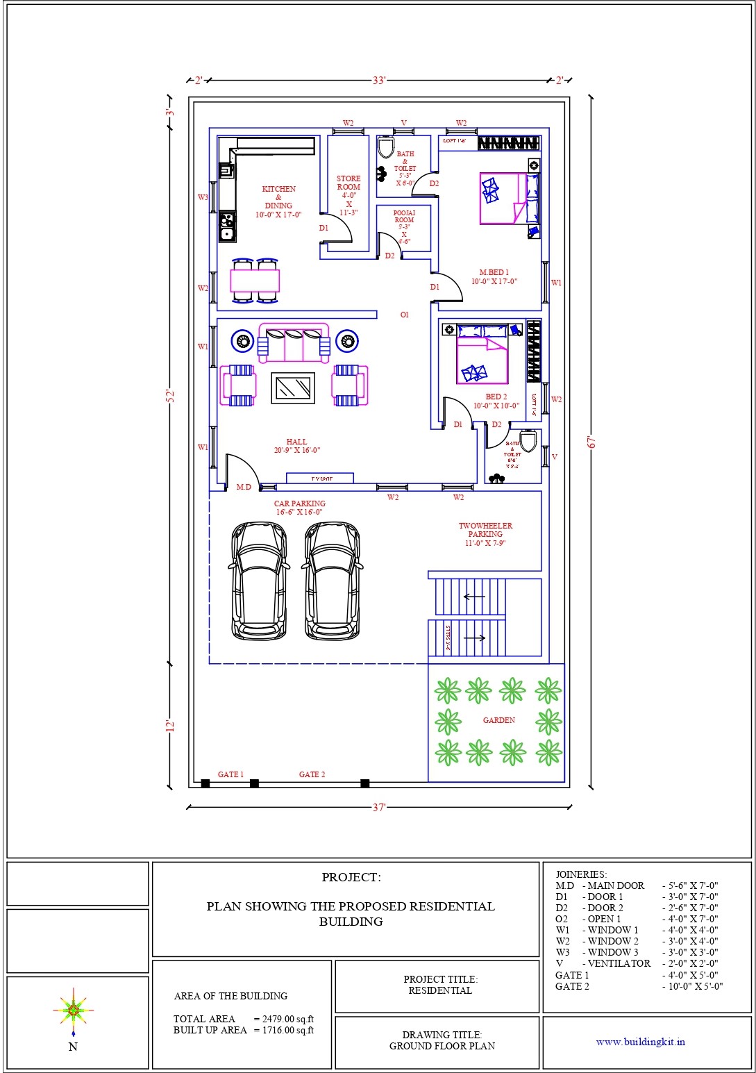 Plot Size: 33’x52′ Plot Area: 1716 sqft