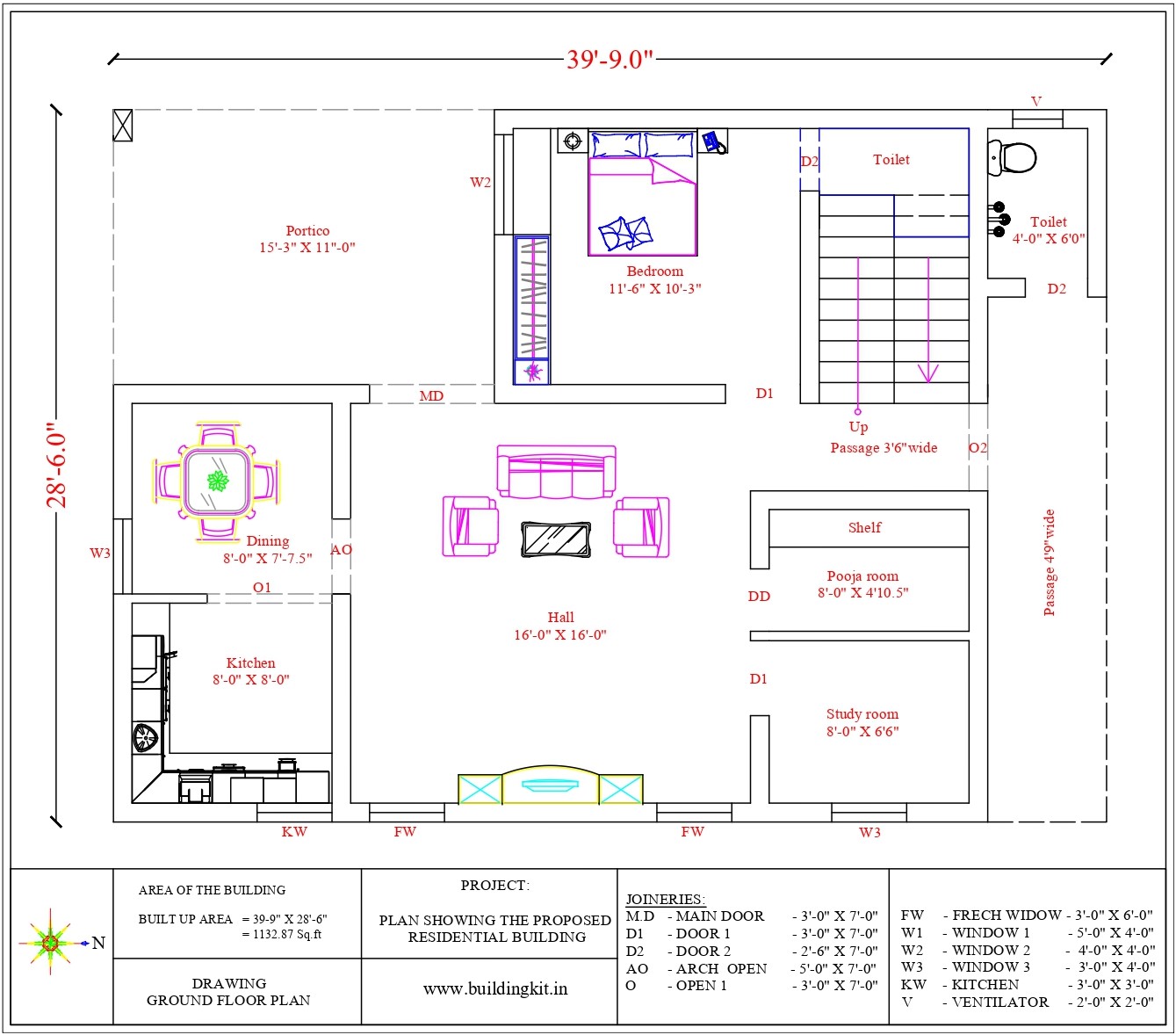| Plot Size: | 39’9″x28’6″ | Plot Area: | 2265 sqft |