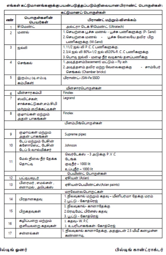 Building Contract specification / agreement template in Tamil- (Ready to use)