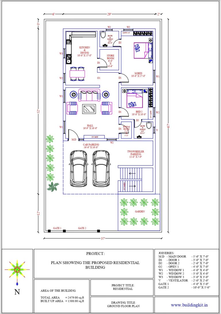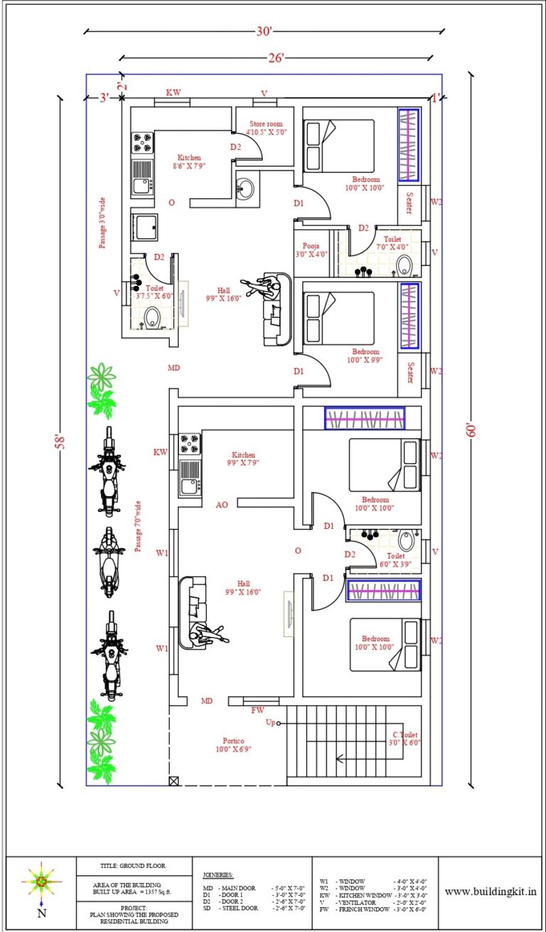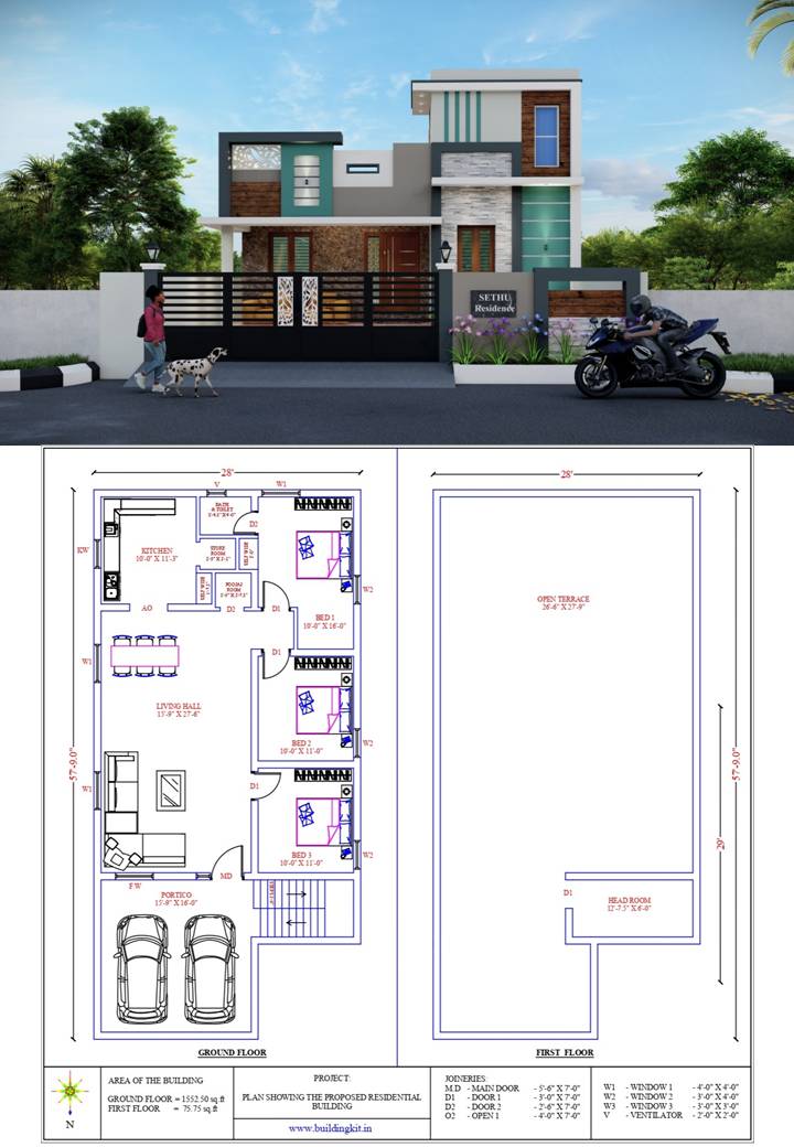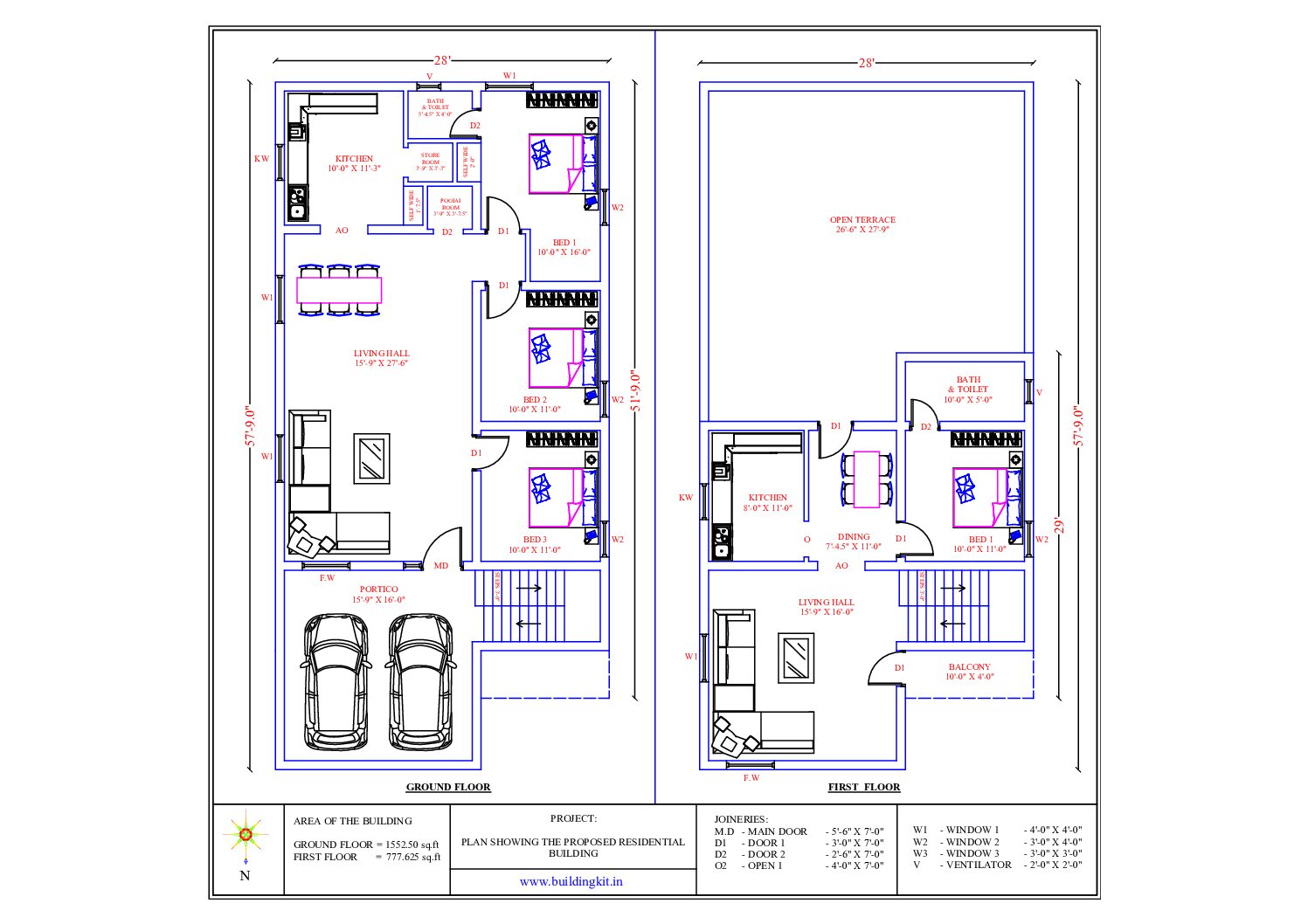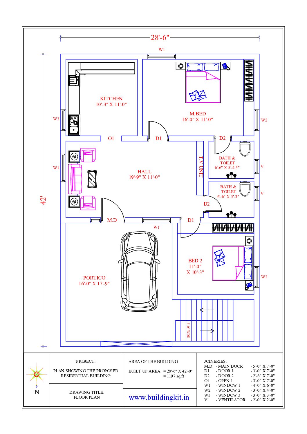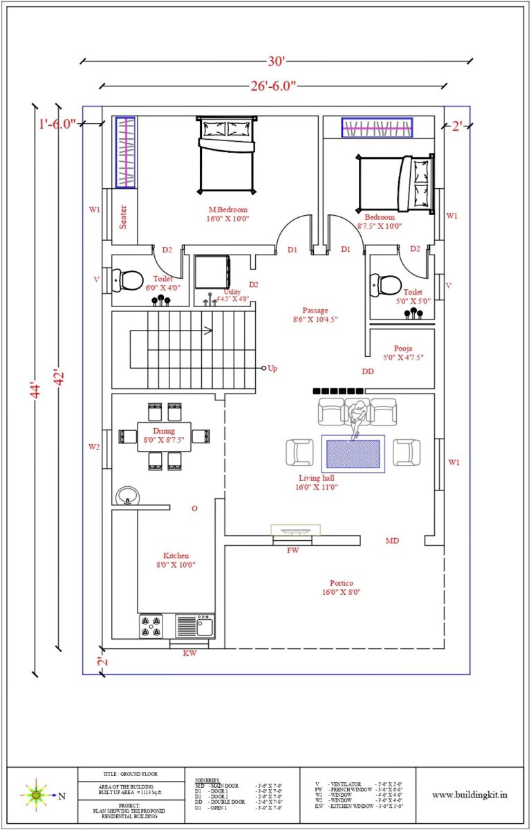 26’6″ x 42’0″ – Duplex house – 2BHK